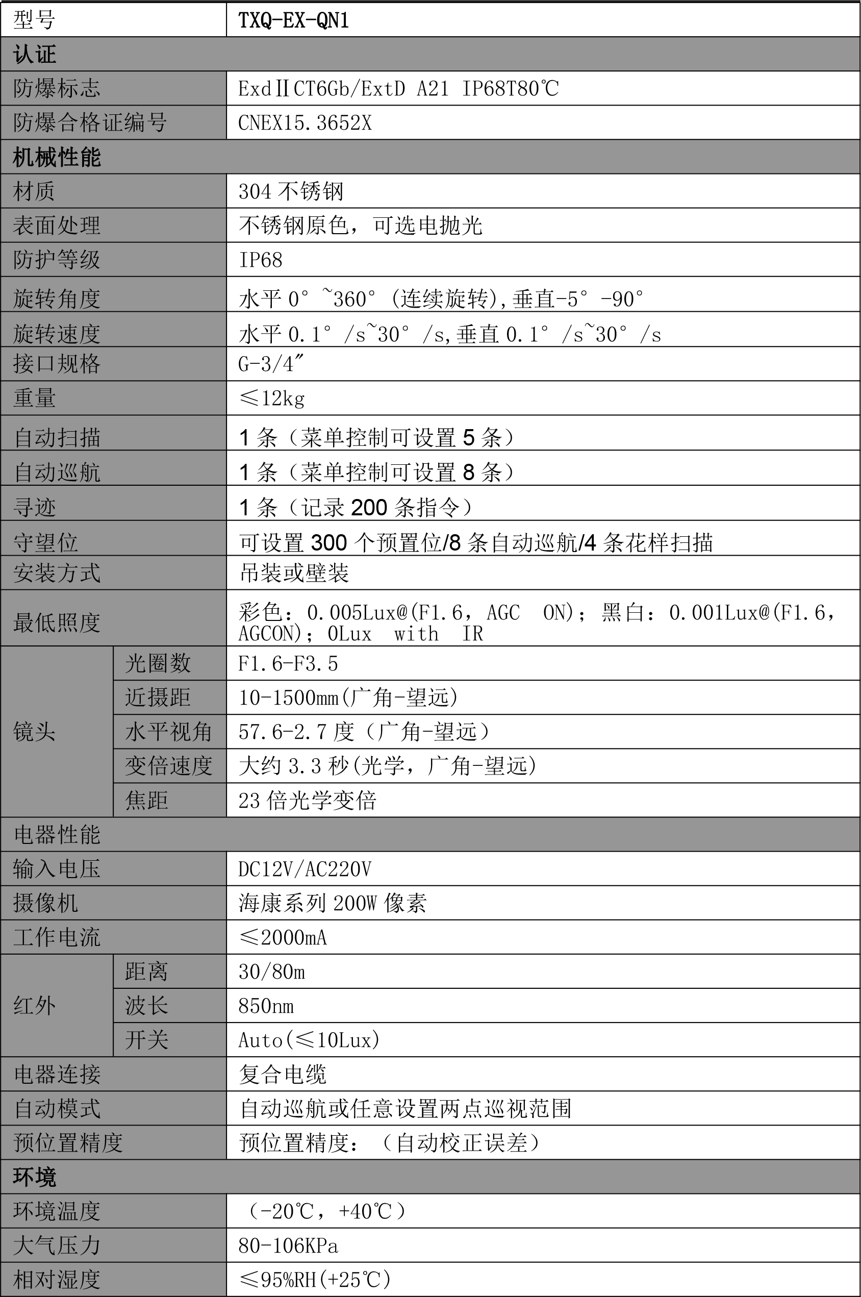 TXQ-EX-QN1是一種專為潛在爆炸性環境設計的監控設備。其防爆設計、高清畫質和靈活旋轉功能使其成為高風險場所的理想選擇。無論是石油化工、天然氣處理還是制藥等領域,內置防爆球機都能夠提供穩定、可靠的監控解決方案。同時,其智能分析和遠程控制功能進一步提高了監控的效率和便捷性,為用戶提供了更加全面、高效的監控體驗。